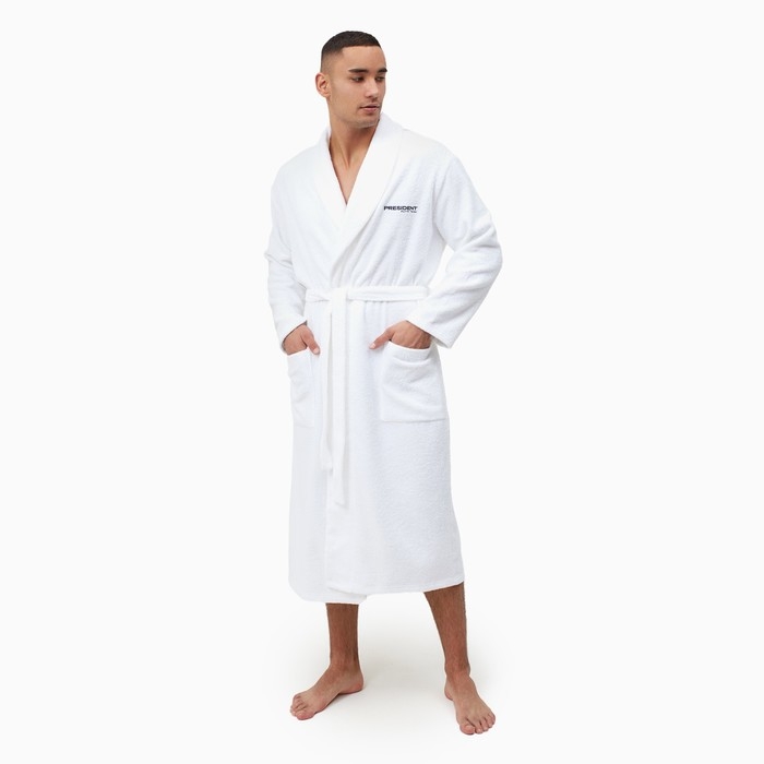 Халат махровый мужской "Putin team" белый, 48 размер (S)