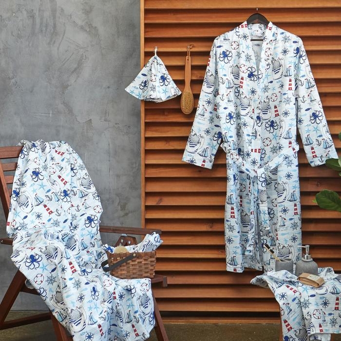 Халат мужской удлиннный Этель "Капитан" размер 58-60, вафля 200г/м2, 100% хлопок