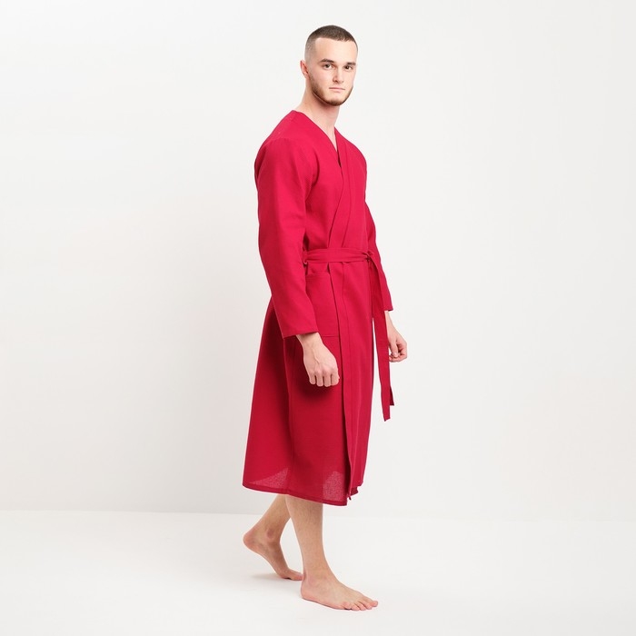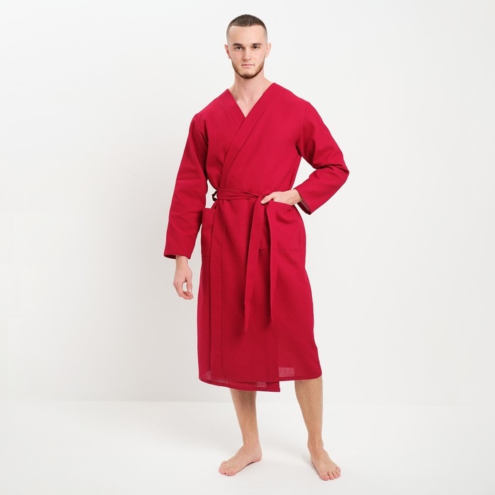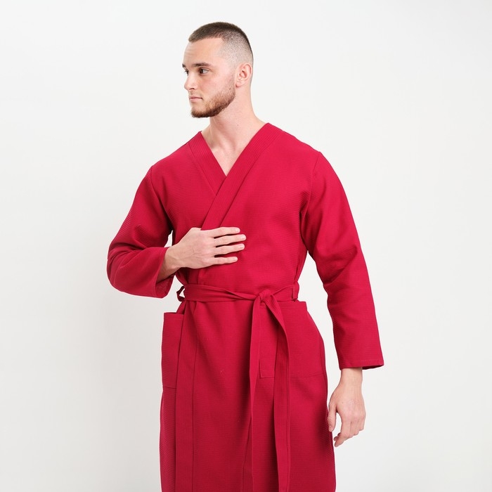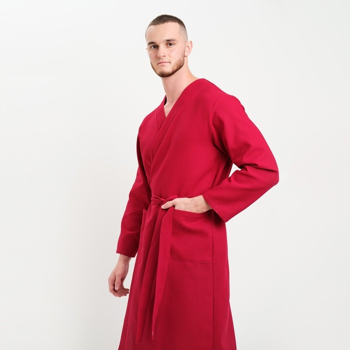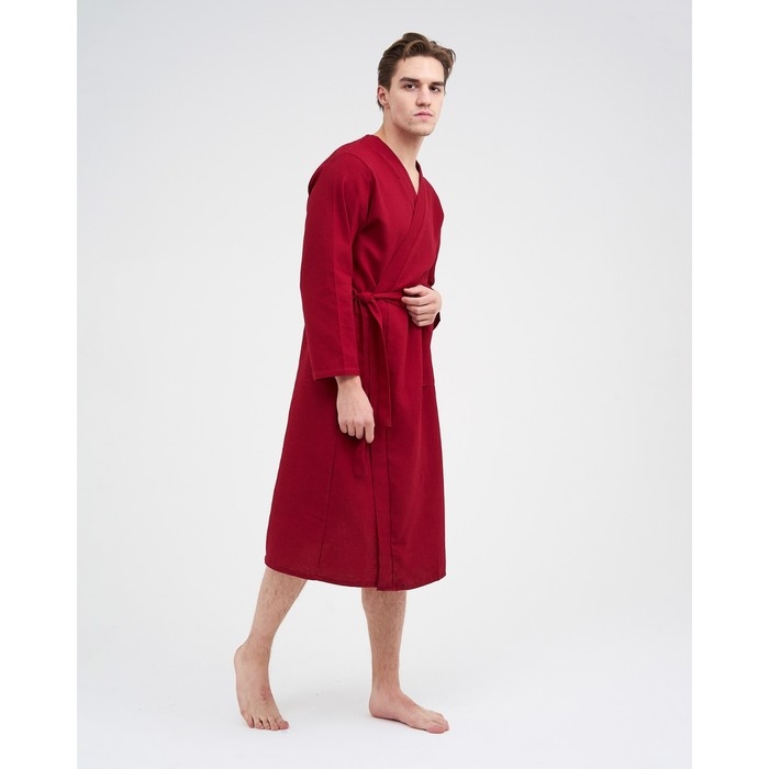 Халат мужской вафельный запашной, цвет вишня, размер 52, 160гр/м