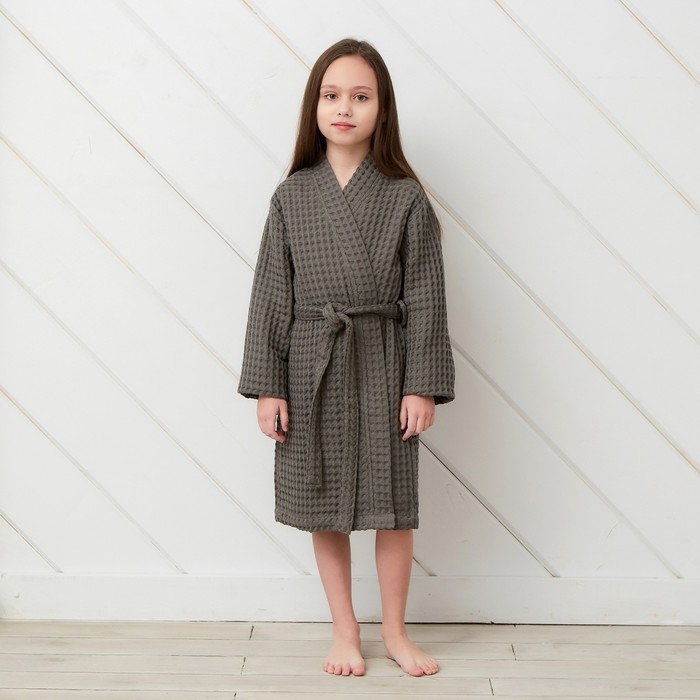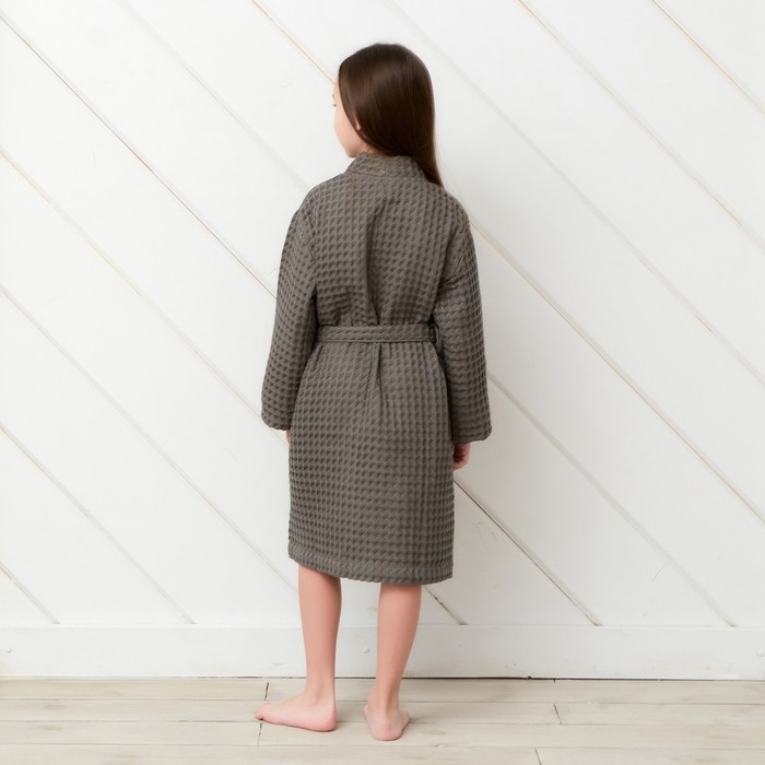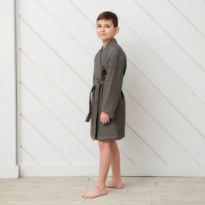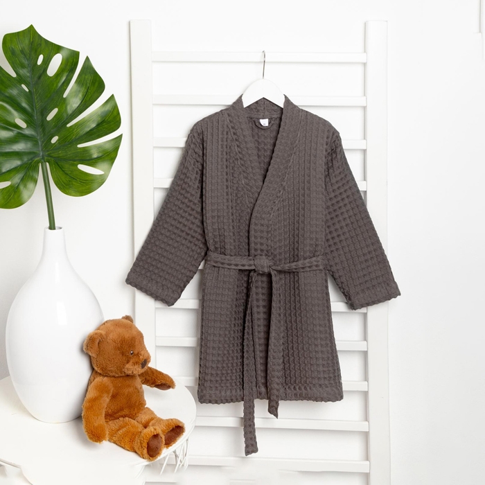Халат вафельный детский Крошка Я "Boho" размер 30 (98-104 см), цвет светло серый, 100% хлопок 290 г/м2