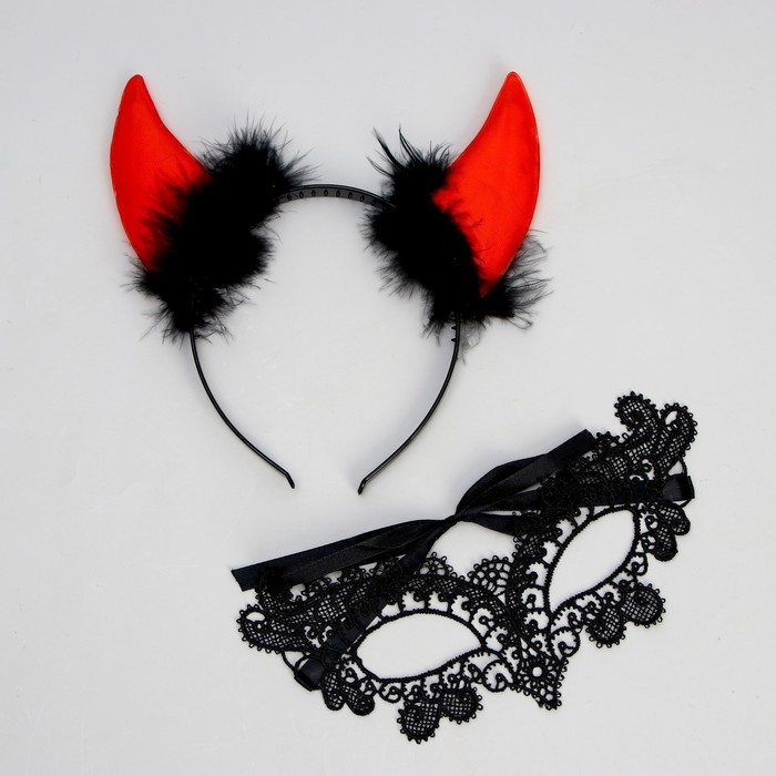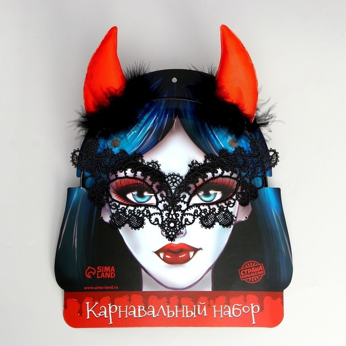 Хэллоуин. Карнавальный набор «Дьяволица» (ободок+маска)