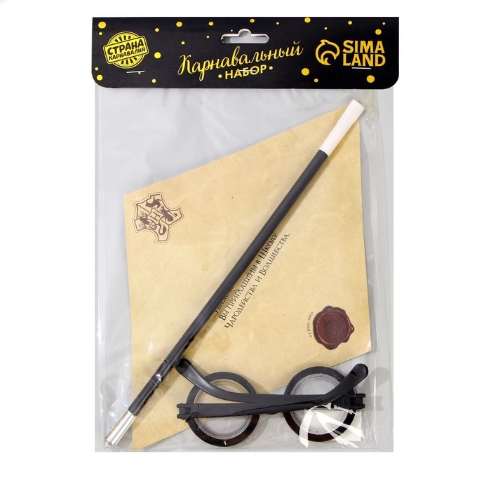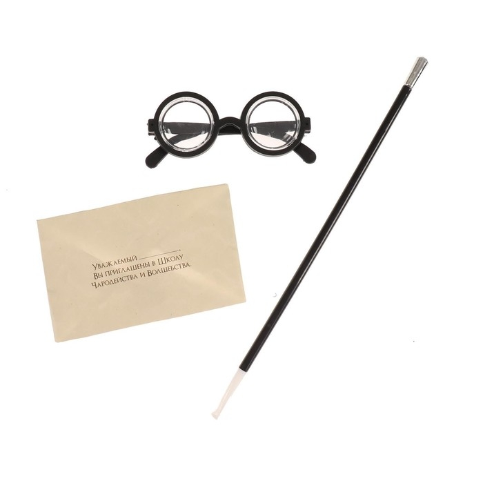 Хэллоуин. Карнавальный набор «Волшебник Гарри» (очки + палочка + письмо)