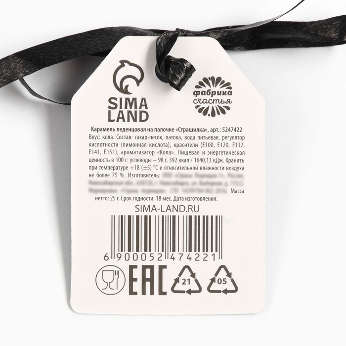Состав: сахар-песок, патока, вода питьевая, регулятор кислотности (лимонная кислота), красители (Е100, Е120, Е132, Е141, Е151), ароматизатор «Тутти-фрутти».