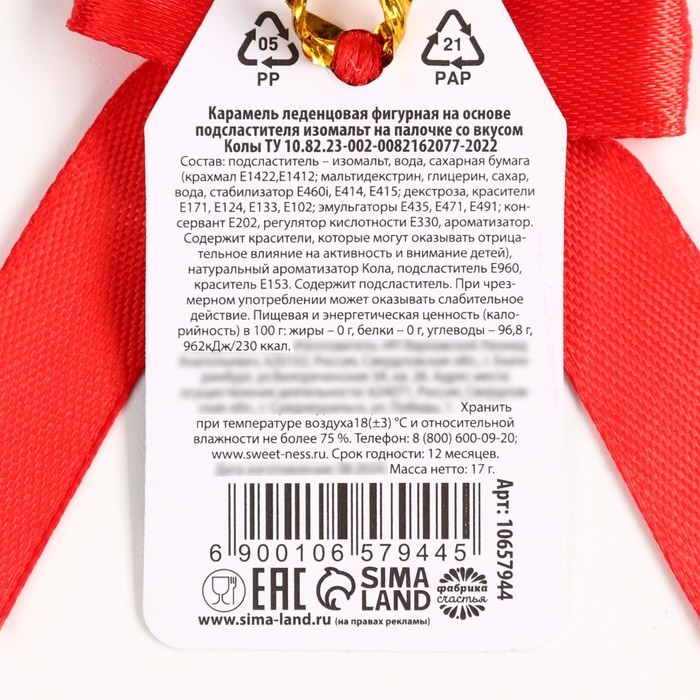 Хэллоуин леденец В О О, со вкусом: кола, 17 г