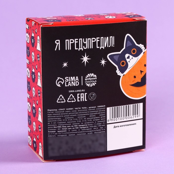Хэллоуин Мармелад в форме частей тела «Уноси скорее лапки», 50 г.