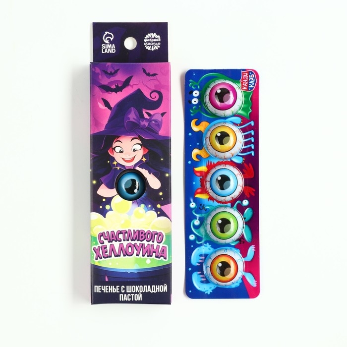 Хэллоуин печенье с шоколадной пастой, в коробке «Ведьма», 5 шт. х 10 г