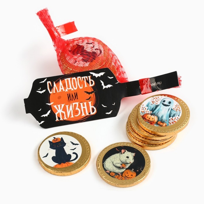 Хэллоуин: Шоколадные монеты в мешочке «Сладость или жизнь»