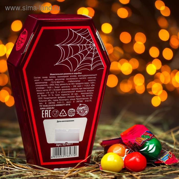 Хэллоуин Жевательная резинка «Страшно вкусно»: со вкусом тутти-фрутти, 47 г.