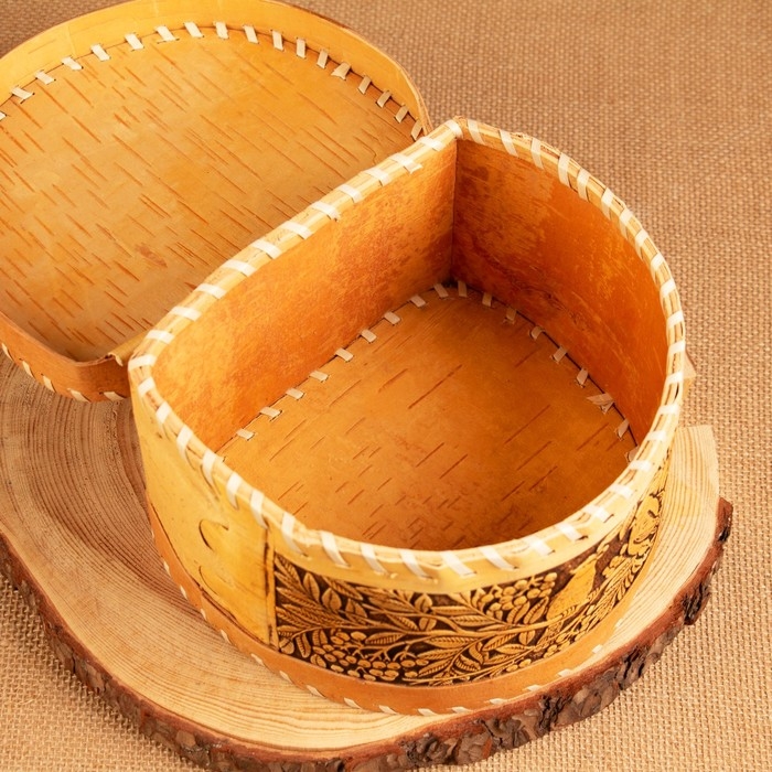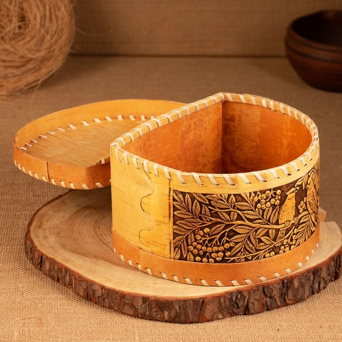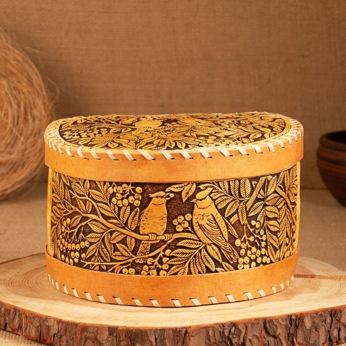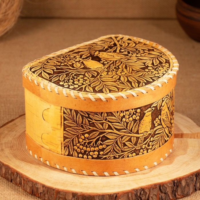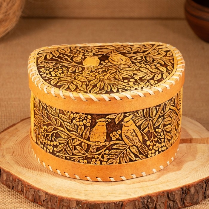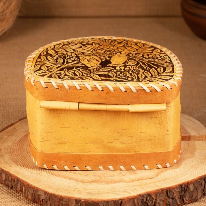 Хлебница-батонница "Птицы", шарнирная, 21 х 19 х 12 см, береста