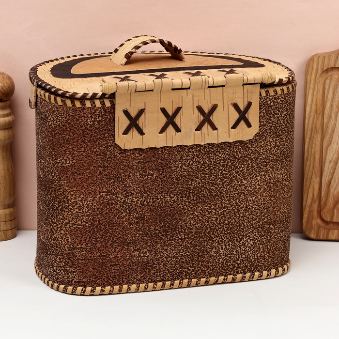 Хлебница "Богатыри", на шарнире, 28х21х24 см, береста