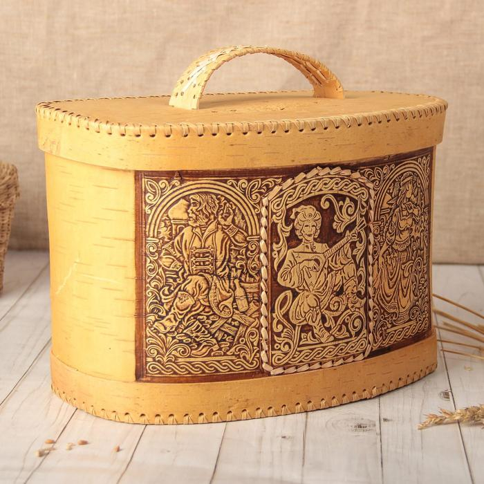 Хлебница «Скоморохи», на шарнирах, с ручкой, 23×27×20 см, береста