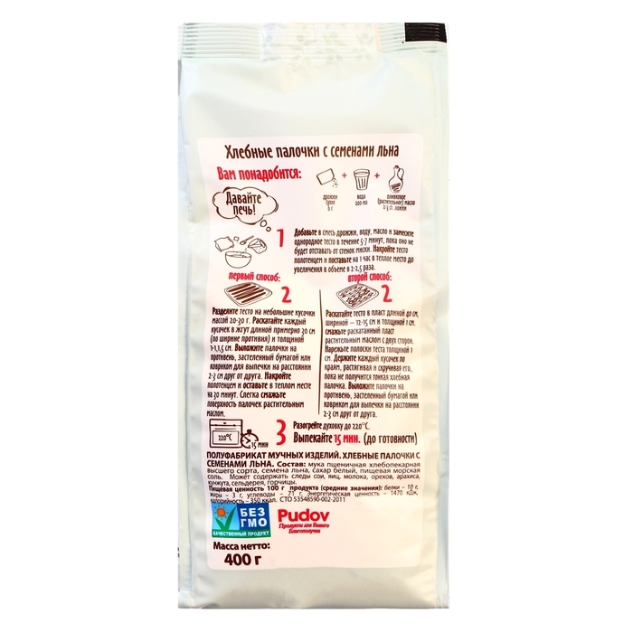 Хлебные палочки – классика итальянской кухни теперь на вашем столе благодаря готовой смеси для выпечки «С.Пудовъ». С ней вы сможете легко и быстро испечь вкусные и полезные хрустящие хлебные палочки с семенами льна. Добавьте необходимые ингредиенты и следуйте простой и понятной инструкции на упаковке, чтобы испечь и подать хлебные палочки к столу в качестве закуски или дополнения к салатам, супам и любимым блюдам.
