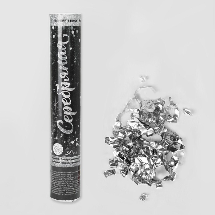 Хлопушка пневматическая «Серебряная», фольга, серпантин, 30 см