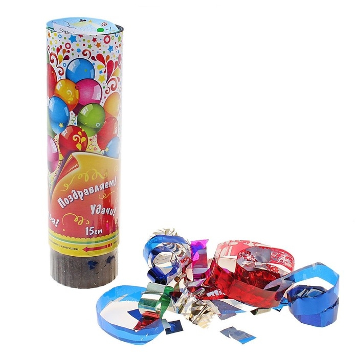 Как оригинально завершить поздравление, придать подарку по-настоящему взрывной характер? Решение есть: пружинная хлопушка к вашим услугам. Она будет стрелять! Но не пугайтесь — серпантином, конфетти и фольгой. Приводится в действие поворотом специально обозначенной части.