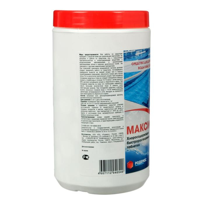 Хлорная таблетка "МАКСИСАН" Быстрорастворимая Туба, 1 кг