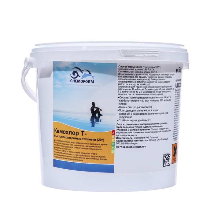 Хлорные быстрорастворимые таблетки для дезинфекции воды в бассейне Кемохлор Т- таблетки (20г), 5кг