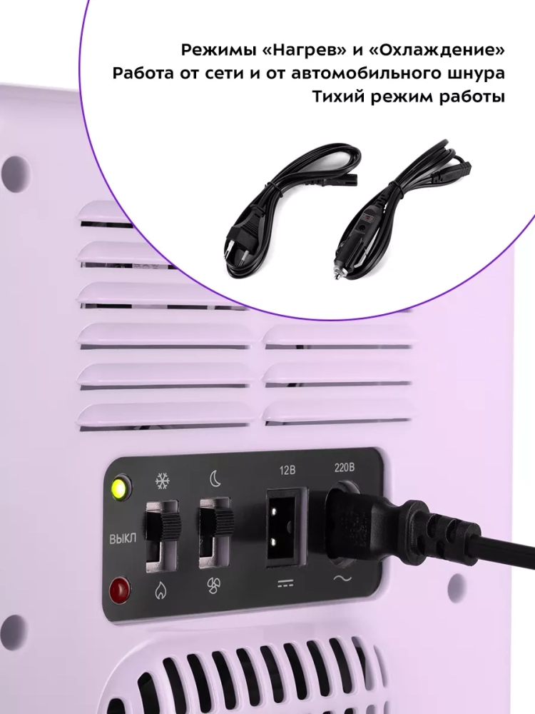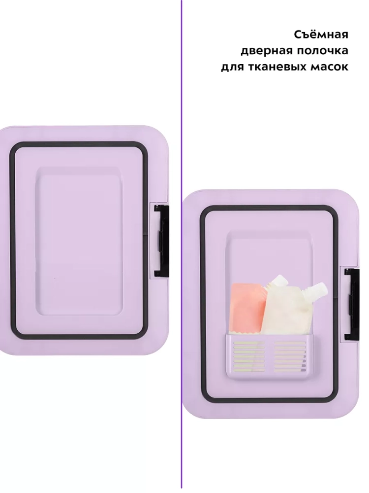 Благодаря наличию сетевого и автомобильного шнура в комплекте вы можете использовать холодильник дома или взять его в поездку на машине. Дверная полка и полка холодильной камеры позволят вам рассортировать косметику.