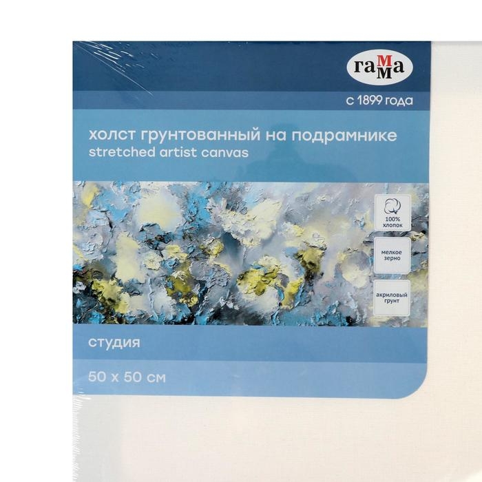 Холст на подрамнике, хлопок 100%, 50 х 50 х 1.8 см, акриловый грунт, мелкозернистый, 280 г/м2, «Студия»