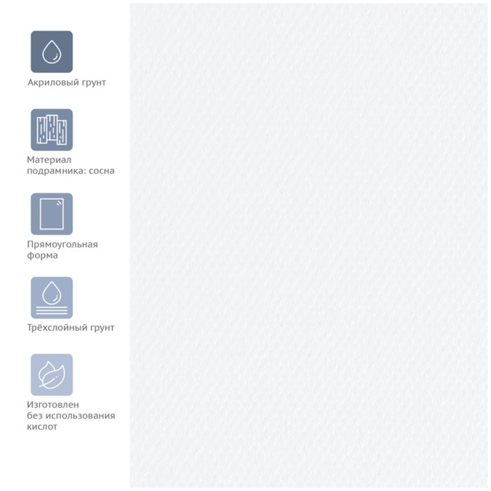 Холст из 100% хлопка для живописи масляными, акриловыми и темперными красками. Трехслойный акриловый грунт сохраняет чистоту цветов и оттенков. Плотность 400 г / м² подходит для создания картин в пастозной технике. Подрамник из натуральной сосны, клинья для натяжения холста в наборе. Крупное зерно.