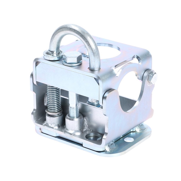 Поворотный хомут крепления опорного колеса / опорной стойки d48. С помощью поворотного механизма хомута, опорное колесо прицепа устанавливается в горизонтальное положение, вдоль дышла.