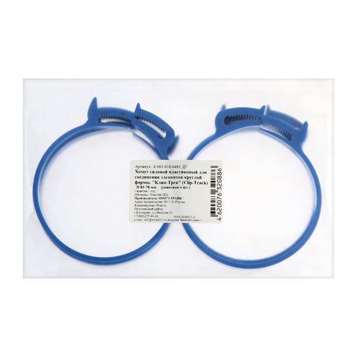 Хомут силовой пластиковый "СТРАЙК", диаметр 78-83 мм, многоразовый, Clip-Track, 4 шт.