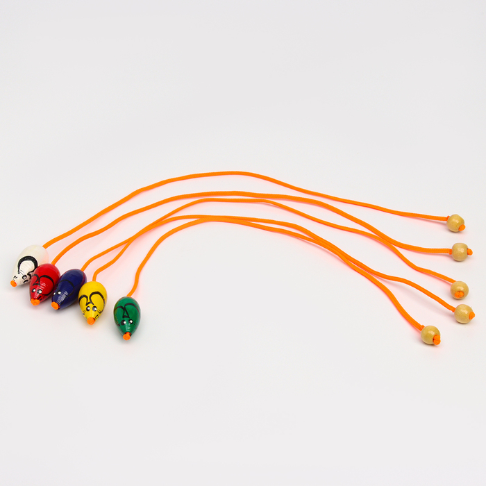 - Остальным участникам раздаётся по мышке (если игроков меньше, можно играть сразу двумя мышками). Соберитесь вокруг стола, расположите мышек носиками друг к другу, а сами держите их за хвостики. Игрок-кошка выбрасывает кубик и старается поймать мышку выпавшего цвета.