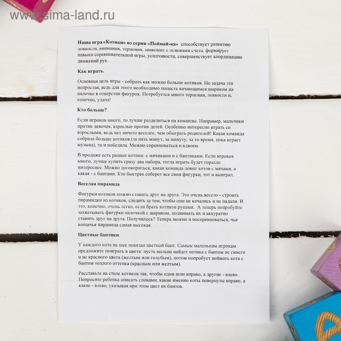 Игра помогает развивать мелкую моторику, необходимую для подготовки к письму и другим мелким движениям. Она также улучшает координацию движений и ловкость, что важно для общего физического развития ребенка.