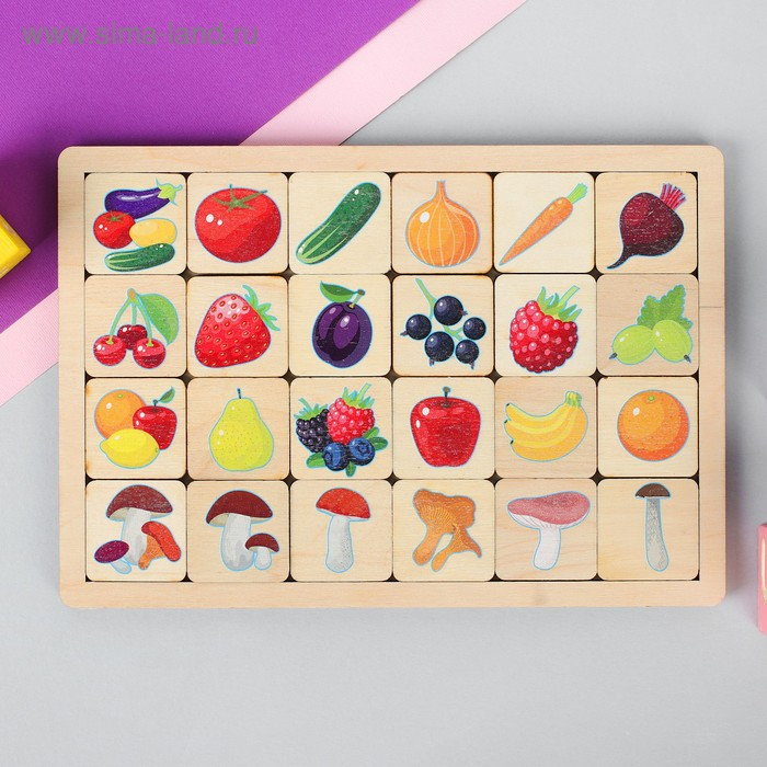 Игра развивающая деревянная «Овощи, фрукты, ягоды, грибы»