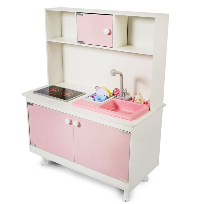 Игровая мебель «Детская кухня», интерактивная панель, раковина с водой, цвет розовый