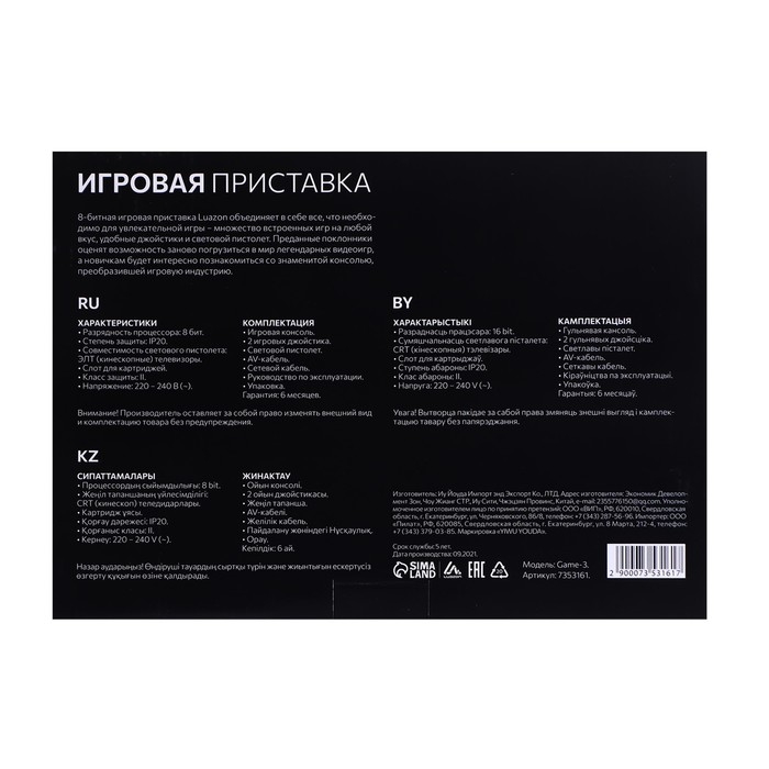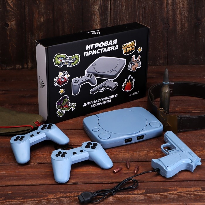 Игровая приставка LuazON Man Game-3, 8 бит, 2 джойстика и пистолет, 22 игры, серая
