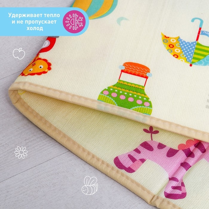 Коврик поможет быстро создать игровую зону в квартире или на природе. Изделие прекрасно подходит для малышей, которые учатся ползать или уже делают первые шаги. Можно использовать на улице, не пропускает холод от пола или земли, легко моется. На внешнюю сторону изделия нанесены яркие изображения. Занятия на коврике познакомят малютку с разными цветами и формами, поспособствуют развитию воображения, зрительного восприятия и концентрации внимания.Безопасность товара для здоровья подтверждена сертификатом качества ЕАС.