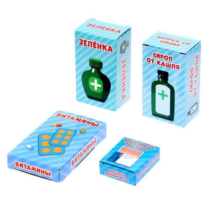 - Коробочки с надписями лекарств внутри пустые: в них можно положить любые баночки или конфетки.