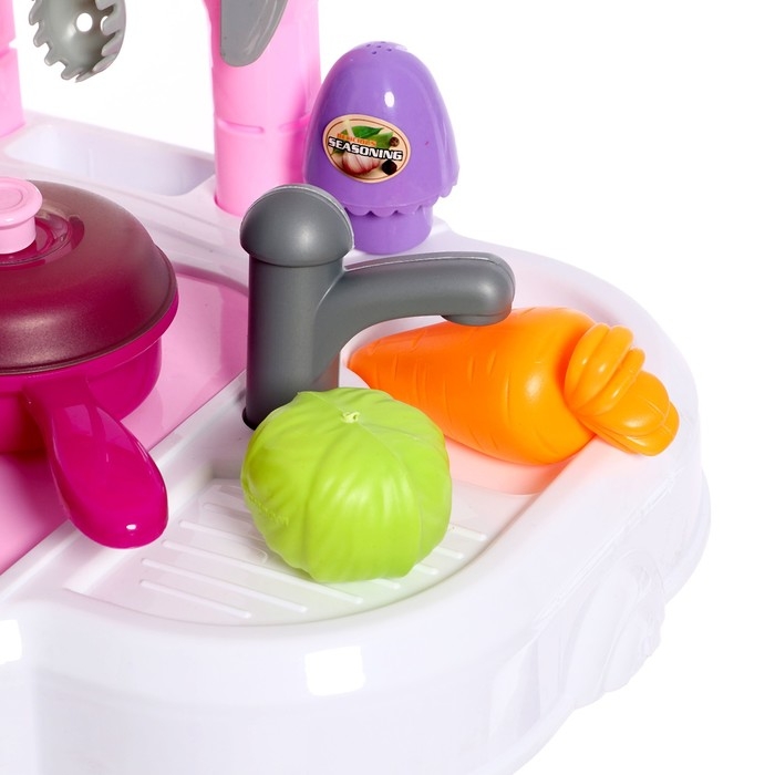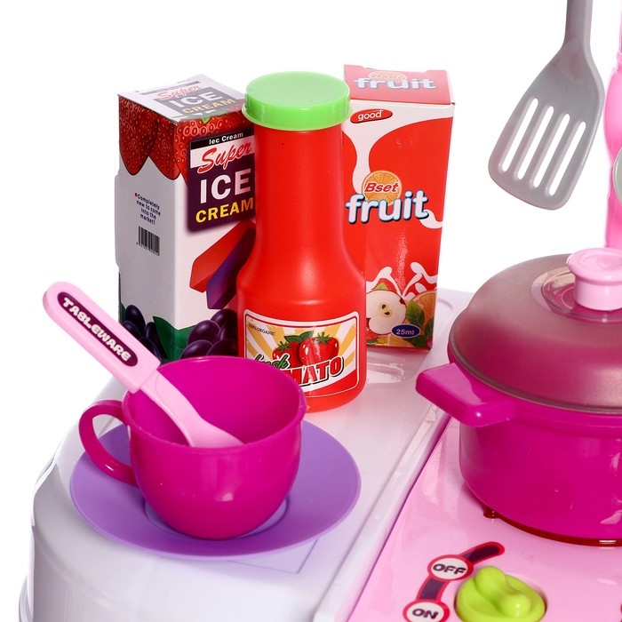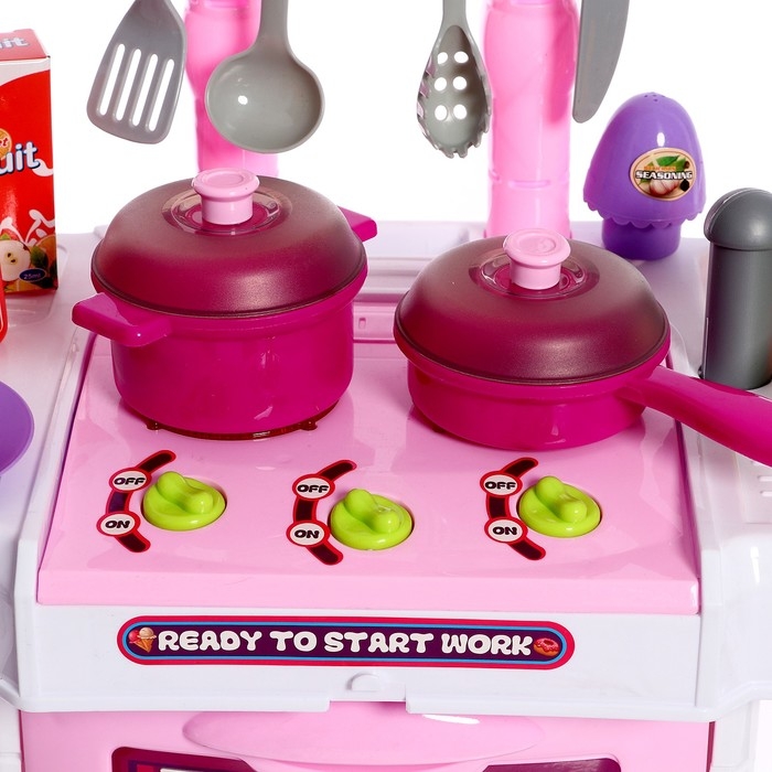 Красочный модуль для готовки идеально впишется в интерьер детской кухни. Разнообразная посуда и продукты позволят малышке экспериментировать и создавать настоящие кулинарные шедевры.