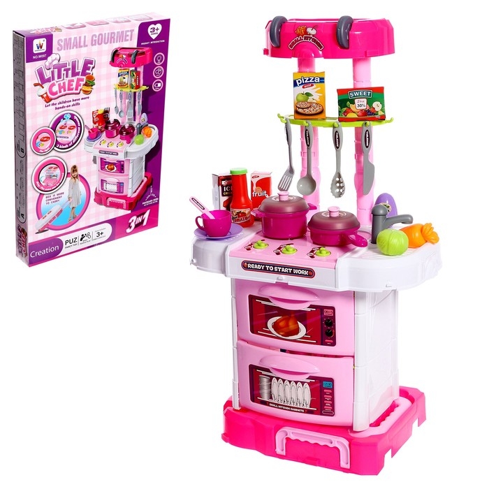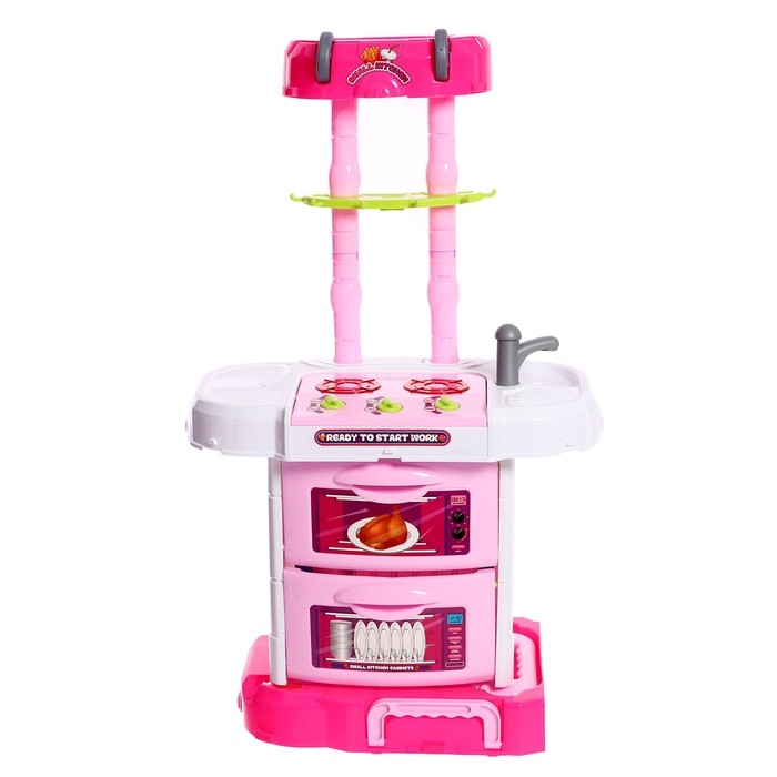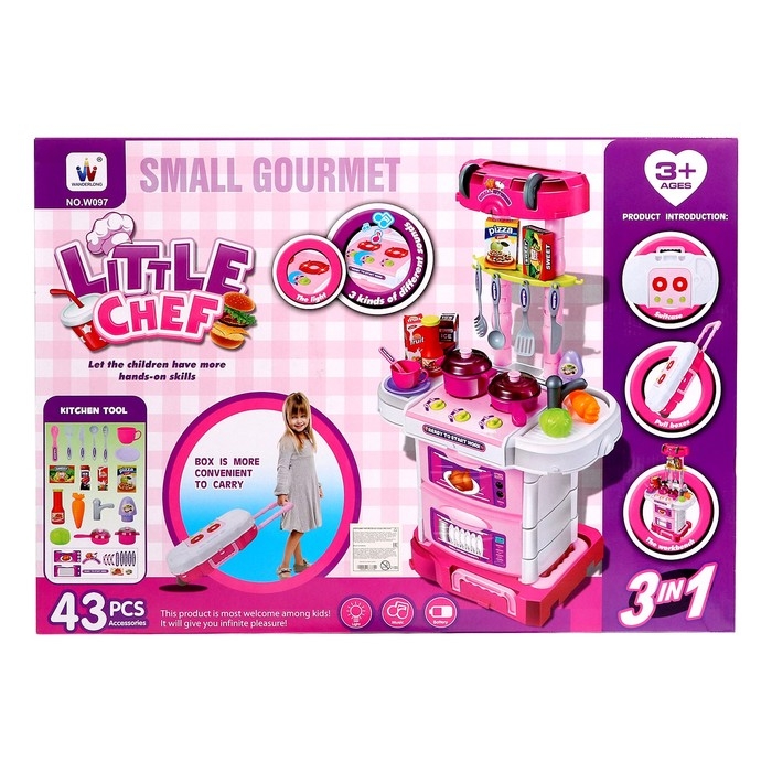 Игровой модуль в чемодане на колёсиках 3 в 1: плита, кухня, чемодан, 43 предмета