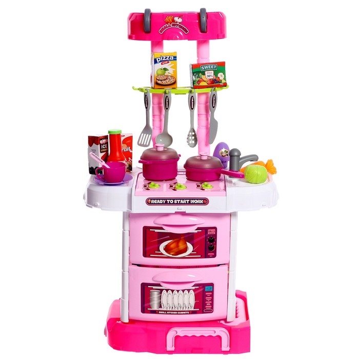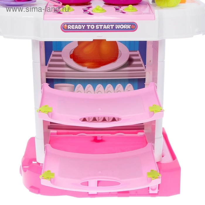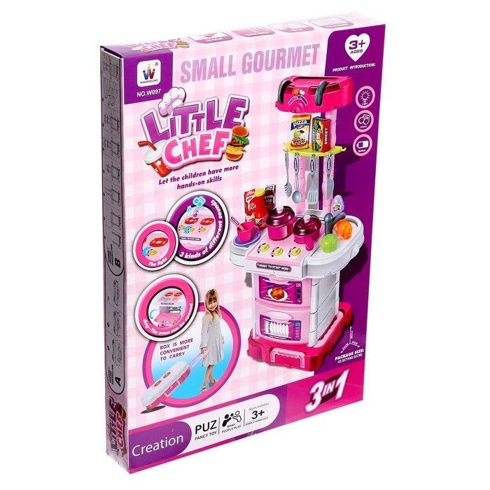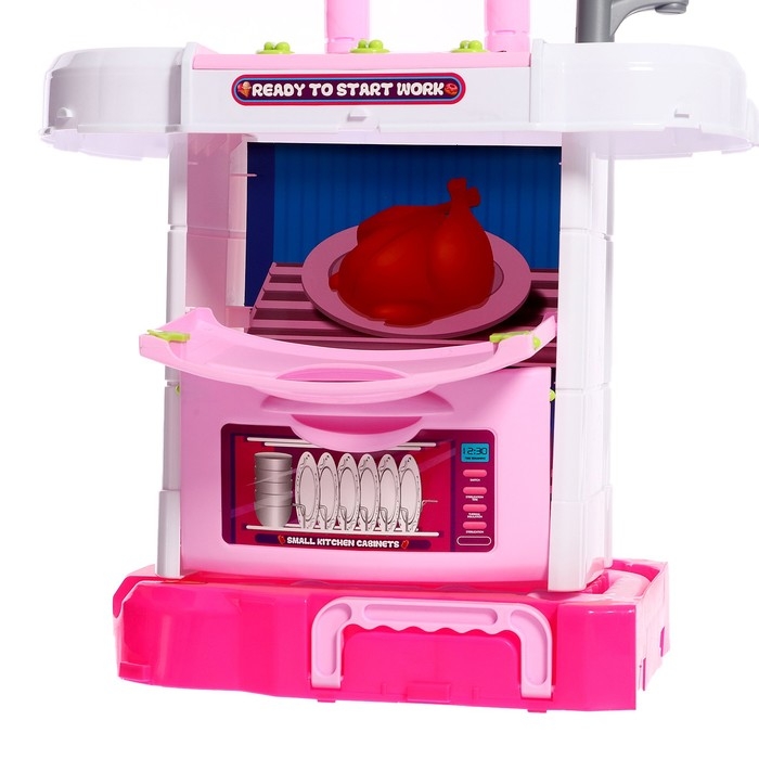 После игры модуль складывается в чемоданчик на колёсах. В таком виде кухню маленького шеф-повара удобно транспортировать, и она не занимает много места.