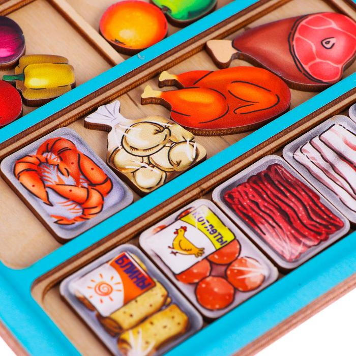 - В наборе 43 фишки-миниатюры с изображением продуктов.