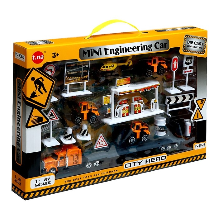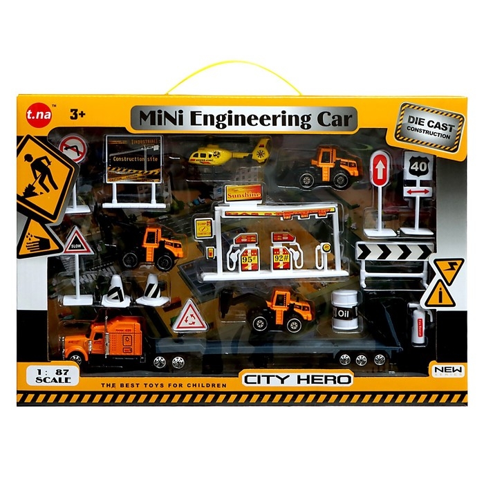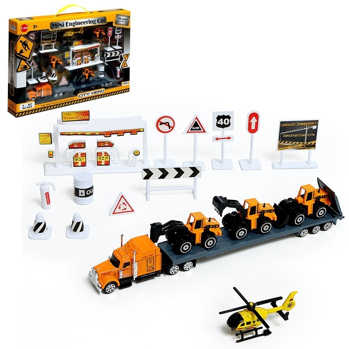 Игровой набор из металла «Строительная техника», в комплекте дорожные знаки и техника