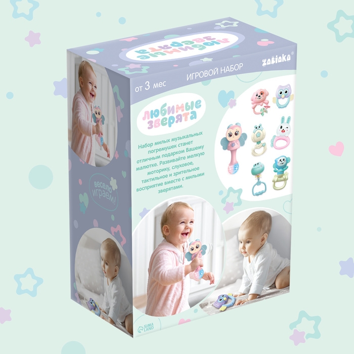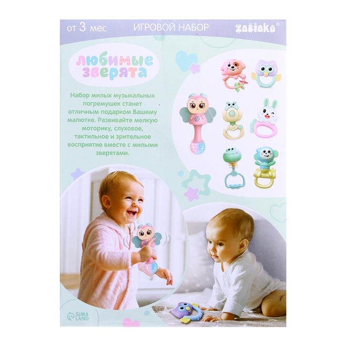 Игровой набор «Любимые зверята» разработан специально для малышей от 3 месяцев. Разнообразные красочные погремушки привлекут внимание трогательным дизайном и надолго займут малыша.