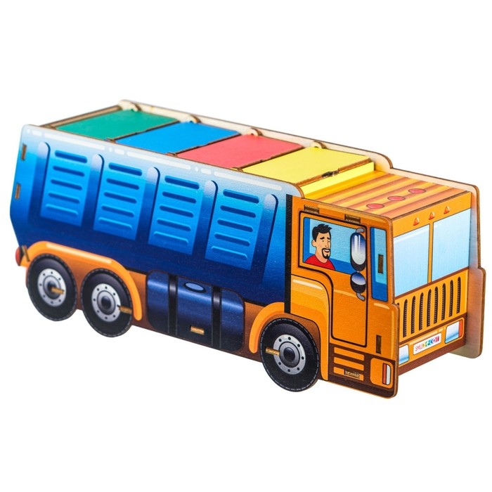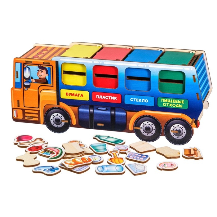 Игровой набор «Мусоровоз» познакомит ребёнка с принципами сбора и утилизации бытового мусора, способствует формированию экологической культуры, развитию логического мышления и социальной ответственности. Игра подходит для детей от 3 лет.