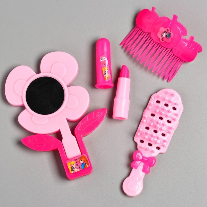 С помощью расчёски и гребешка дочурка уложит локоны в шиньон, посмотрится в зеркальце и накрасит губы помадой.