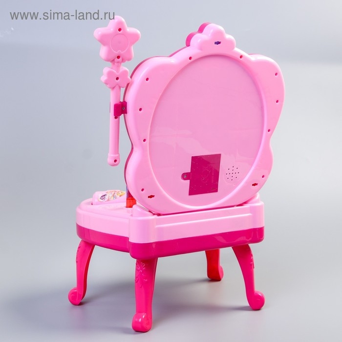 Маленькая фея всегда будет выглядеть очаровательно с красочным игровым набором. На столике разместится вся косметика и бижутерия юной модницы. Перед зеркалом девочка расчешет волосы, сделает причёску и накрасит губы помадой — можно отправляться на прогулку.