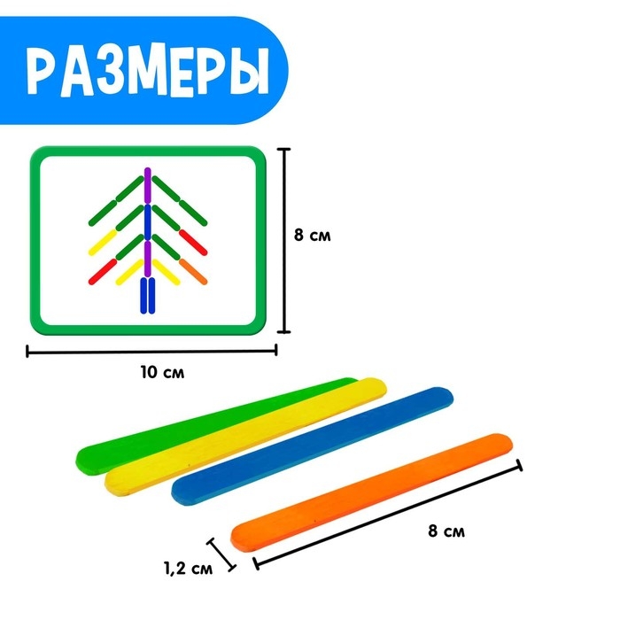 Обучающий набор «Собери фигурку» подходит для малышей от 3 лет. Он включает деревянные палочки и карточки-схемы. Палочки выполнены из натурального дерева, приятны на ощупь и абсолютно безопасны для ребёнка!