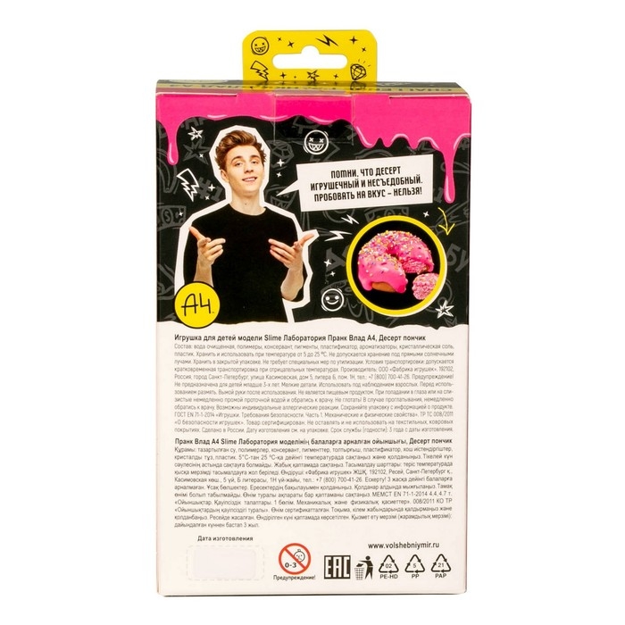 Игрушка для детей модели «Slime Лаборатория Пранк Влад А4» «Десерт пончик»