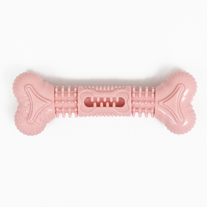 Игрушка для лакомств и сухого корма "Кость", TPR, массажная, 14,5 х 3,5 см, розовая