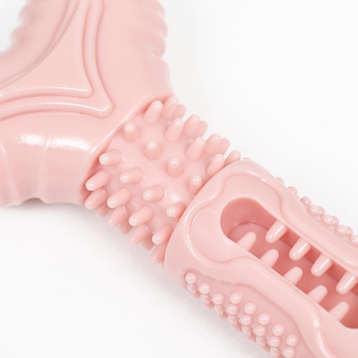 Игрушка для лакомств и сухого корма "Чистилка", TPR, массажная, 14 х 3,6 см, розовая