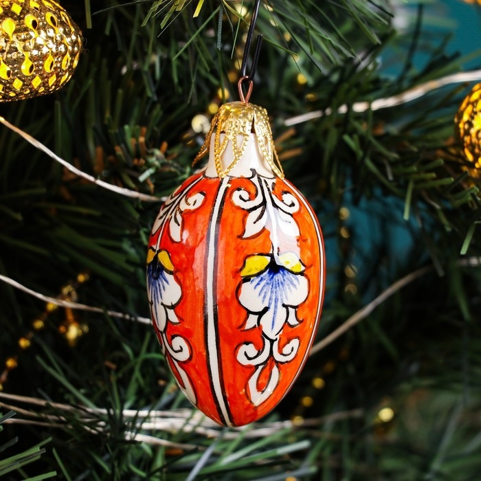 Игрушка ёлочная Риштанская керамика "Шишка", 7,5 см, оранжевая