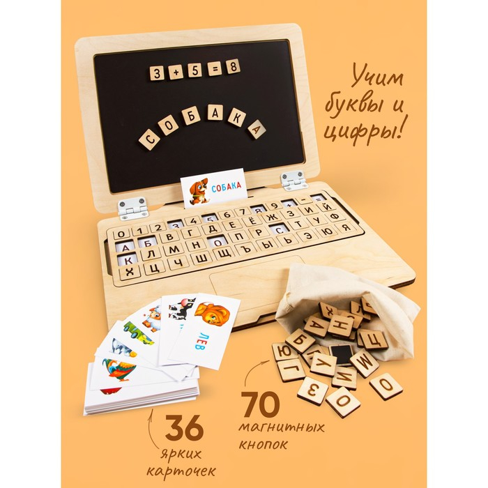 Настольная развивающая игра «Ноутбук: Алфавит» знакомит ребёнка с буквами, словами и цифрами. Игра помогает ребёнку подготовиться к 1 классу. Игрушка подходит для обучения детей 3-5 лет.