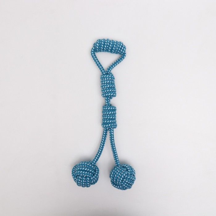 Игрушка канатная с ручкой и мячами "Дуэт", до 35 см, до 180 г, голубая/белая