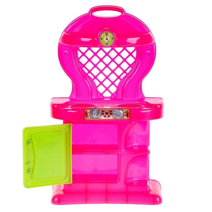 Яркая кухня пробудит в малышке желание готовить и экспериментировать с продуктами. Девочка придумает обеды куколкам, сварит суп и испечёт угощения на десерт.