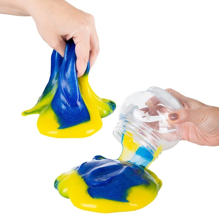 Двухцветный слайм «Мялка-жмялка» никого не оставит равнодушным! Он приятно мнётся, растягивается и растекается в руках. Используйте его в качестве антистресса.